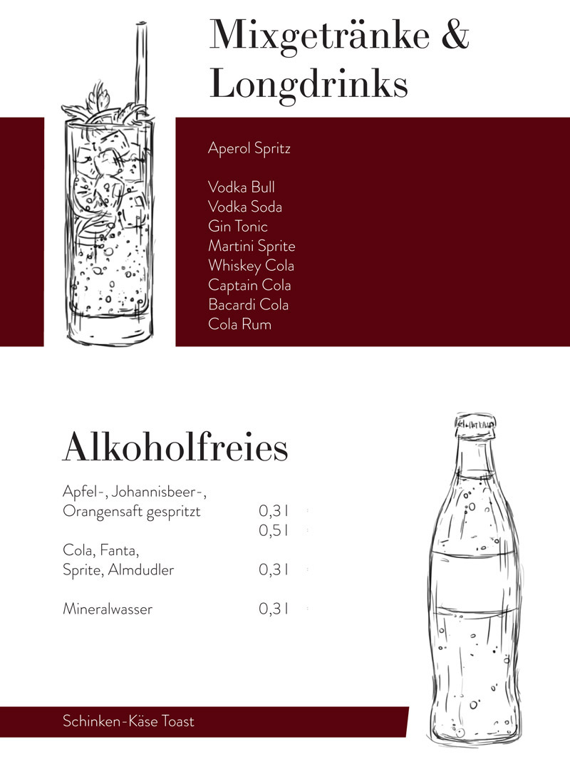 Unsere Getränkekarte - Bier, Wein, Shots, Mixgetränke & Longdrinks